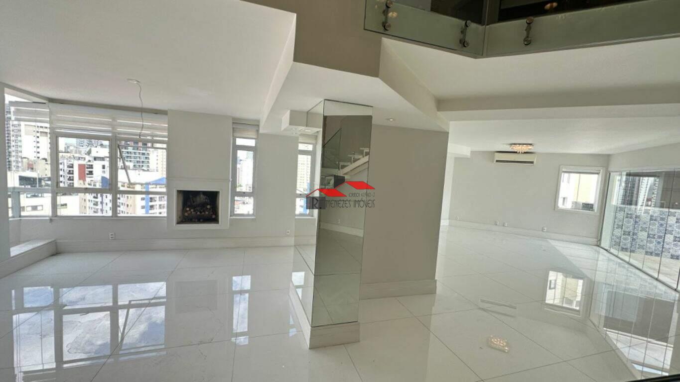 Apartamento duplex na cobertura, totalmente pronto para morar, sendo o primeiro andar constituído de sala de jantar e sala de estar com lareira, lavabo, área externa com piscina e churrasqueira coberta com estrutura de vidro, cozinha, lavanderia e banheiro de empregada. Área gourmet equipada com frigobar Brastemp. No segundo andar há 1 (uma) sala de TV ou escritório e 3 (três) suítes, sendo a suíte master com closet walk in e banheira vitoriana. Apartamento todo reformado, revestido com materiais nobres. A cozinha está equipada com armários Florense, geladeira e máquina de secar KitchenAid, fogão e coifa DCS. Todos os ambientes já possuem lustres e cortinas instalados. Todos os quartos possuem armários. Escada com corrimão de vidro. Há 5 máquinas de ar condicionado, quente e frio. 4 (quatro) vagas na garagem e 1 (um) depósito. Área útil = 250m2 Área total = 309,62m2 Lazer: Jardim com áreas de descanso, quadra poliesportiva, academia, sauna, salão de festa, salão de jogos, brinquedoteca, piscinas adulto e infantil, portaria 24hrs, gerador, sistema de segurança completo. Localidade: O condomínio está localizado em um dos bairros mais nobres de São Paulo, com fácil acesso ao Parque do Ibirapuera, Parque do Povo, Praça Pereira Coutinho, Avenida Faria Lima, Shopping Iguatemi, Eataly, Hospital e Maternidade São Luiz, Escola Mobile, Escola Lourenço Castanho, além de estar cercado pelos melhores restaurantes de São Paulo.