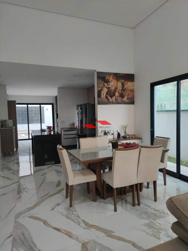 ? 3 Suítes (sendo 1 master com closet); ? Sala de TV com pé direito alto; ? Sala de Jantar; ? Lavabo; ? Cozinha com ilha de mármore; ? Churrasqueira; ? Piscina; ? Jardim; ? Lavabo Externo; ? Lavanderia; ? Garagem para 4 veículos; Diferenciais: ? Torneiras de alta qualidade; ? Mármores em todos os ambientes; ?Persianas automatizadas nas suítes; ? Acabamento fino; ? Porcelanato madeirado; ? Área Construída: 150 m²; ? Terreno: 321 m²;