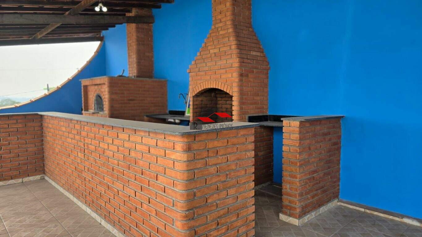 Área gourmet completa com churrasqueira e forno de pizza, perfeita para encontros especiais.